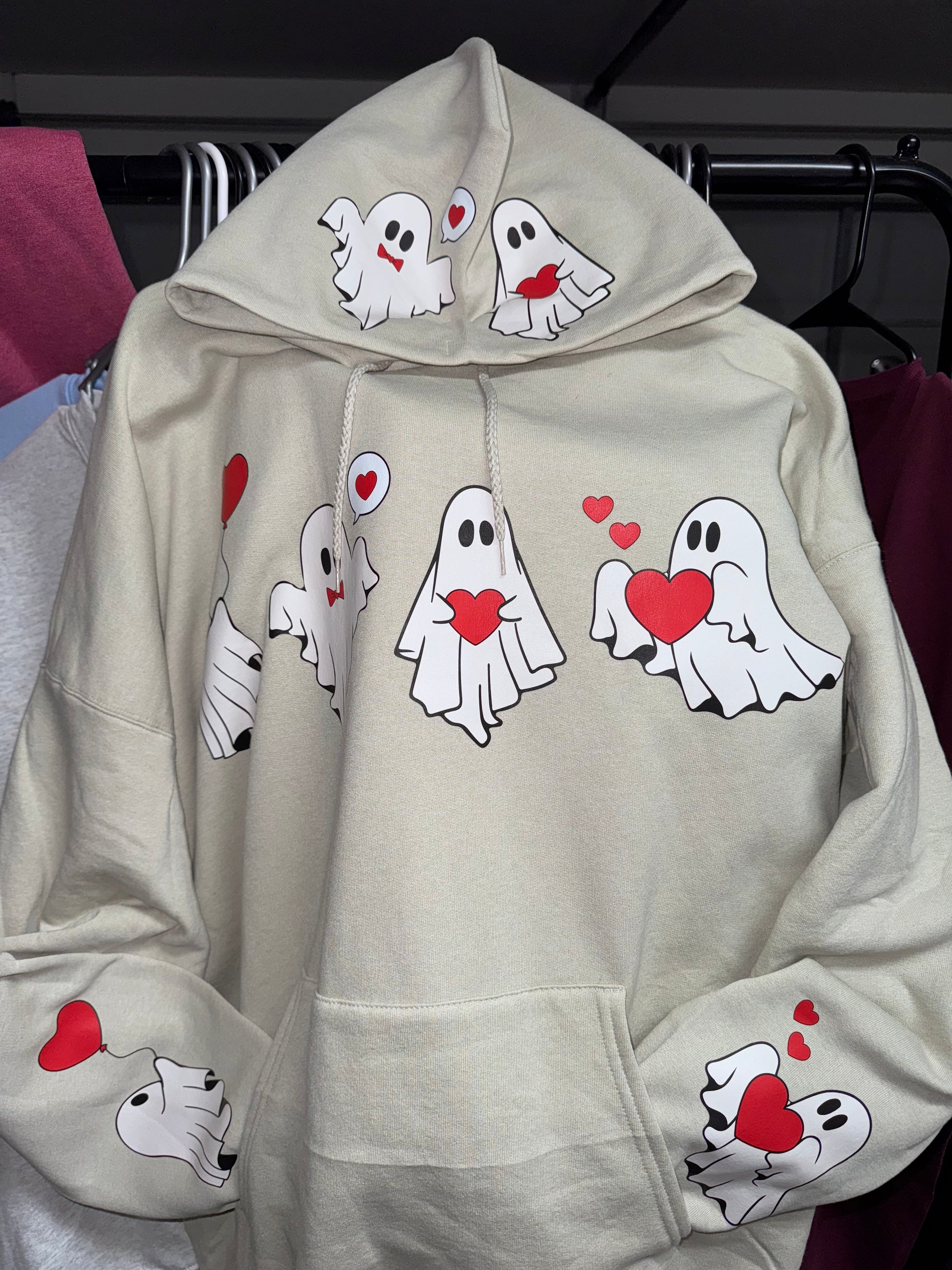 Stay stylish and cozy this Valentine's Day with our Ghostie Hoodie. Made with a soft 50/50 Gildan fabric, this hoodie not only turns heads but also keeps you warm and comfortable. Perfect for any occasion, upgrade your wardrobe with this must-have piece.